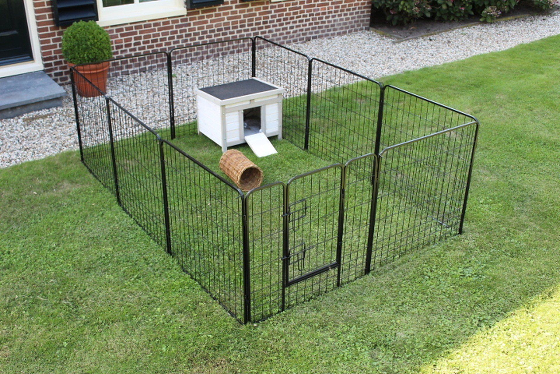Onze robuuste konijnenrennen zijn voorzien van een kleine maaswijdte aan de onderzijde. en zijn daarmee uniek! Dit voorkomt dat uw konijn uit breekt.
